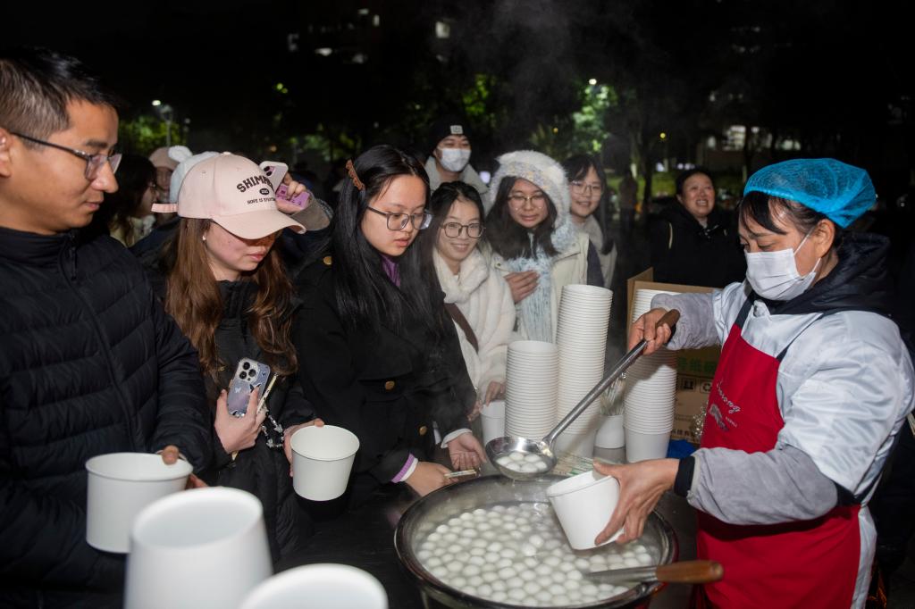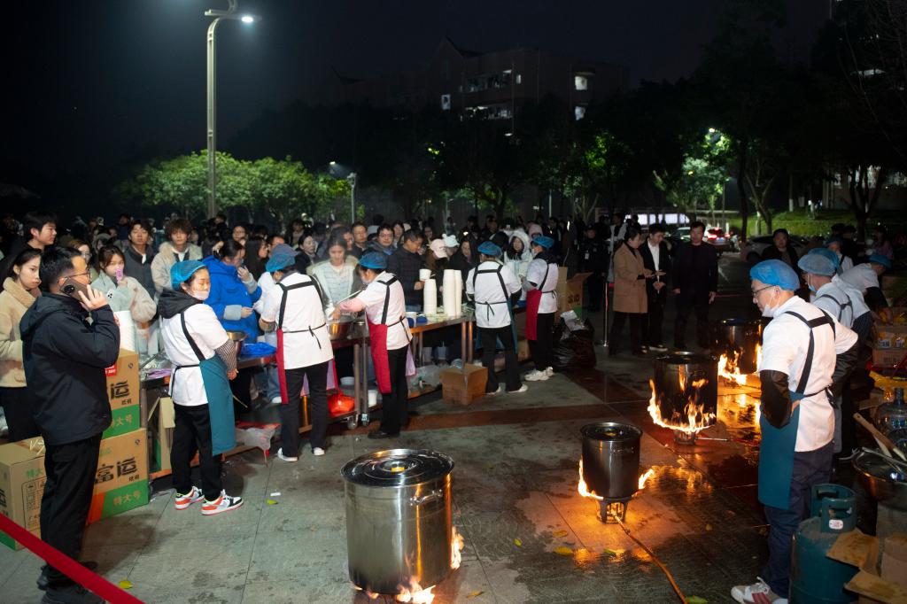 4000余名师生有序排队凭券领取汤圆,一碗份足味美的汤圆,既承载着学校的关怀,也蕴含着团圆迎新的美好寓意。安保人员全程坚守岗位,保障活动现场秩序井然、安全顺畅。